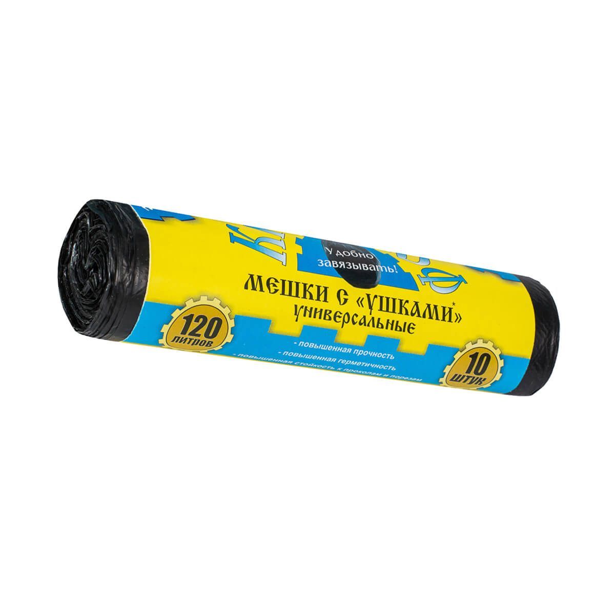 Мешки для мусора 120 л, с ушками, черные, в рулоне 10 шт., ПНД, 13 мкм, 1050х680 мм, Крепакоф, 4607075710436